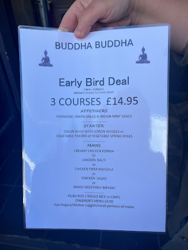 The vegetable curry was very plain flavoured although fairly spicy (even though my girlfriend only ordered it because the menu said it was mild!). Likewise the lamb curry was quite bland and tasteless. This should come as no surprise as Buddha Buddha is the least authentic indian restaurant in the world (ALL the staff, including the chef, are caucasian, and on the way out we saw into the kitchen and they have stacks of pataks sauce jars. Yes, seriously).