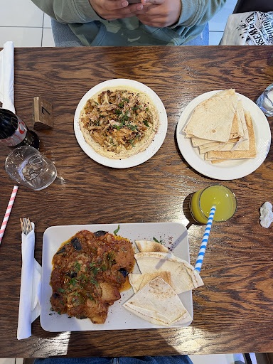 For starters we had Moutabel, which was not at all what we expected. It was a big mush, topped with herbs that tasted like pencil sharpener. 😬 Thr pita was too thin and didn't have any flavour. For mains we went for the chicken a la cream and the spicy shawarma dish. For sides we ordered Greek salad with no olives, but it came with olives and the herbs on top of it again like a pencil sharpener. We also ordered a side of fries. The atmosphere was nice and staff lovely, but both chicken dishes were huge and i could barely finish one. Minus the herb spices the meal was quite nice. I like jow the mushroom sauce went with both rice and chicken. The herbs really ruined the salad. The mocktails were both amazing, but when you go towards the end you can't get the juice through the straw because of the bits so it's a bit annoying, but...