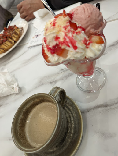 Ordered a strawberry shortbread sundae. Got some vanilla and strawberry ice-cream with some cream and a garnishing of shortbread crumbs. I ate some of it thinking the shortbread would be in the centre or a little further down, but there was no shortbread in my sundae. Lolz. I asked the staff at the counter what this was? Thinking they may have made a mistake, and got told that is the way they make their shortbread sundae. This was definitely NOT one. Also the sundae must have had 1 strawberry in it in total. Manager was rude to staff Infront of me, saying she should not have given a refund but offered an alternative. To which I suggested that they should maybe have the correct description listed on the menu. Maybe it should have been called strawberry and vanilla ice-cream garnished with a pinch of shortbread. Lolz. Service was also all over the place. Coffee came first, then 15mins later the deserts came one after another approx 5mins apart min. Waffle was fluffy, and light. However the Nutella tasted more like milk chocolate instead. The Oreo overload was more of an underload very dry due to lack of milk chocolate/nutella. The crepes were decent. Generally, nice interior,lame service though they tried. Maybe it was the service from the kitchen, but I was given my coffee without a spoon etc. Coffee tasted like Tassimo coffee and the cup was half empty. Needs improvement, doesn't feel like a franchise seems like amateurs trying to imitate Haute Dolci. ...