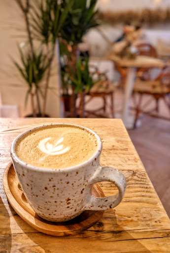 First impressions are important. It was clean, new(because it is), the lighting was perfect, the sign on the wall says something like "you can sit with us." I like the way the door is inset by a few metres, a little old fashioned but adds character. The staff were friendly, happy almost which is rare, the cups and saucers were different, the set out of the drinks list on the wall, the seating... all a little different. A friendly and cozy feel to the joint, I like it there.