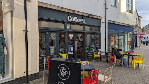 Do yourselves a favour and rather than wasting your money here, go to one of the indies instead: Y Sied Goffi (across the road by the cinema), Ridiculously Rich (next-door but one to C#1), Tea Traders (a couple of hundred yards along the pedestrianised bit of town, they have the best home-made cakes in town), Bailey's (owned by Bailey, a 7-month old dachshund and very welcoming of other dogs), Espresso Yourself on Queen St, or, if you don't mind the trek, Calon LĂąn next to the Co-op in Johnstown. Do check their opening times, though.