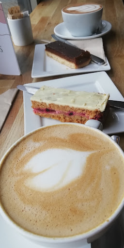 Read moreBest coffee/cake experience I've had in at least a year! I had a white cocoa mocha which was extremely good, a lovely creamy taste with a perfect balance between coffee and chocolate, especially good considering it was made with skimmed milk. My brother and I shared two tray bake cakes - the yoghurt & blackberry flapjack was INSANELY good and the dark choc millionaire shortbread delicious too. A fair number of treat options are pretty unique, and SUCH a lovely change from the dull, homogeneous experience in so many other coffee shops. I'm so surprised the review rating is only 4.4, prices for coffee and tray bakes are slightly more than average (though huge slices of cake seem good value), BUT SO worth it if you really want a PROPER treat rather than just a coffee to...