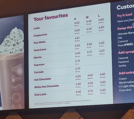 Arrived 9.20pm Saturday 23rd February Was greeted by a girl sitting at a table who told us that it was her "shadow shift" and she could not serve us, but someone would be along shortly, no problem so I waited, the girl was polite and these things happen. After 5 mins, maybe more, a woman in a hoody appeared carrying a till/float, she was not wearing Costa uniform, she came behind the counter and rather curtly told me that she couldn't serve me for another ten minutes as she was "cashing up a till". I then left as we'd already been waiting pushing ten minutes and I didn't fancy waiting another ten. There was no apology or further explanation from the woman in the hoody, they just watched us walk out the door. I know it isn't a regular Costa, and trading patterns are strange, so I don't hold them to the same standards, but this really wasn't acceptable, real shame as we do tend to pop in here sometimes when the normal...
