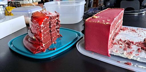 [[Update: the fondant completely slid off the day after the wedding! Stank of vinegar from the cheap buttercream and vinegar mix. Very poor quality compared to the other red velvet cake made at the same time by someone else. No slip, didnt stink of vinegar. (Photographed) ]]