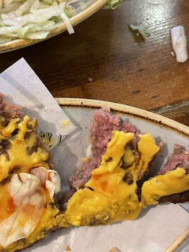 After sorting all that our food started to come out but all at once so we had all the starters and mains together. My partners burger was ordered without tomatoes but came with them, thankfully not something someone would have an allergic reaction to. According to the server it was our fault as we didn’t add a note that starters come before mains 🙄 even though I had spoken to one of them.