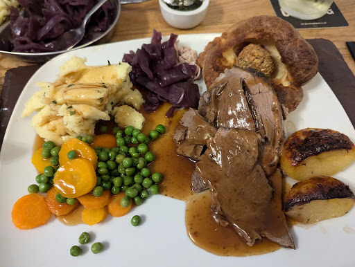 Ate here with the Mrs on a Sunday. Beer was great. Booked a table the night before and rightly so, they were busy! Owned by a family and run by the family. Owner was definitely getting hands on & served us personally. Loved that. ||Menu selection was good. Variations of meat. The Mrs went for the vegan, she was very impressed! I went for the beef. The beef was a little tough and over done, but still very edible & seasoned beautifully. The roast spuds (or the one!!) could have been crispier too. Portion sizes were huge! It doesn’t look like much when they bring your plate to the table, then the veg comes. I’m a big guy and I left very satisfied!||Everything tasted great. If I were to give some positive feedback it would be to give the customer the option of mashed or roast potatoes. Both were good, however I’d rather have the roasties. Maybe more than 1 too! Albeit I’m a pig!!!||The meal however was definitely not to be sniffed at for !£13.95! for two courses. I think this pub is aimed for the locals, who I I could eavesdrop they enjoy the pub too and I was glad to eat amongst them.||Desert was to die for too. I’d recommend...