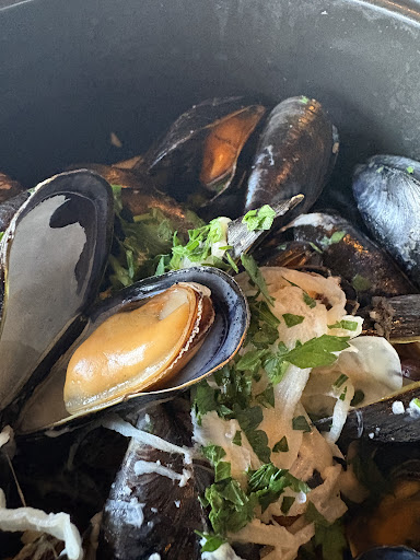 Read moreWould just like to say before this review that I am in no way fussy or have unrealistic expectations about having a meal out but I was really, really disappointed with Dylan's. Had a reservation for 2 for an evening and we were so looking forward to good food, a good atmosphere and a fabulous view. The view was spectacular but sadly, that was the best thing about the evening. The welcome and hostess were lovely and we were shown to our table upstairs. Our order was taken within a few minutes after sitting down. The drinks we ordered arrived separately, a good amount of time apart. We were there for the local fish and seafood, so opted for starters and a small main. For some dishes, the menu had options for both starter-sized and main meal sized dishes. We chose scallops for our starters and a starter-sized mussels and starter-sized chowder for our main course. Despite reiterating this a couple of times, this was lost in translation with our waitress. We received one scallops starter and another did not arrive. When we asked a different waitress (our original waitress was on her phone behind the bar), she arranged for us to have another. Unfortunately, my friend had already eaten her starter by the time mine came. The scallops were lovely however the pickled vegetables that came with them was very overpowering for the delicate flavour of the scallops. I absolutely LOVE pickles but it was just too much. The mains were delicious, the seafood chowder was excellent, with huge prawns and a generous amount of seafood. The flavour and freshness of the mussels were divine however there was such a great deal of grit in them that they were inedible as it was hurting my teeth chewing them. Again, I am a huge, huge fan of moules marineres however it was impossible to enjoy them. I understand that the mussels are incredibly fresh and to expect some grit, but every single one I ate was just awful. The sauce was very good though. Baring in mind I had barely eaten any food, our waitress didn't ask us how our food was and we were brought the bill. £75 was a lot of money to spend on only one of us eating a proper meal. But, we're British so we paid and left quickly. Was hoping this to be a new favourite on Anglesey but I can't say...