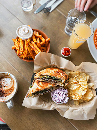 We had a fry up and the sausages were local to Gower, and came with corn fritters and potato rostis- bloody love that! I don’t usually rave over sandwiches, but my Beef, horseradish and pickles toasted ciabatta was phenomenal!! Also, the harrisa, lemon and garlic chips were stars of the show! Coffee is from a local producer and made with care; great latte art and they clearly know what they’re doing!