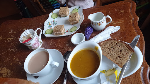What a gorgeous little gem. Came across this with my daughter today as we wandered around Abergavenny. Staff were so welcoming on arrival and service was really quick. We both ordered the soup and sandwich deal £12.50pp. We ordered courgette and coriander soup and pea and mint soup. Both were obviously homemade and absolutely delicious. Our toasties were cheese & onion and tuna melt and again, both were so tasty and portions were generous too. There were so many cakes (homemade too) but we were too full afterwards. The atmosphere was so lovely and there was plenty of room between all the tables. There was even a cosy corner with a very comfortable sofa and a bookcase with books. What a gorgeous tearoom and we’ll definitely return on our next visit to lovely Abergavenny. Highly...