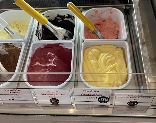 Their ice cream is delicious. Interesting flavours: I had rhubarb which was creamy and subtle. They also do ice cream cocktails; we had a gin and tonic one which was great. The ice cream itself is dense and creamy, which to me suggests high quality and high cream content.
