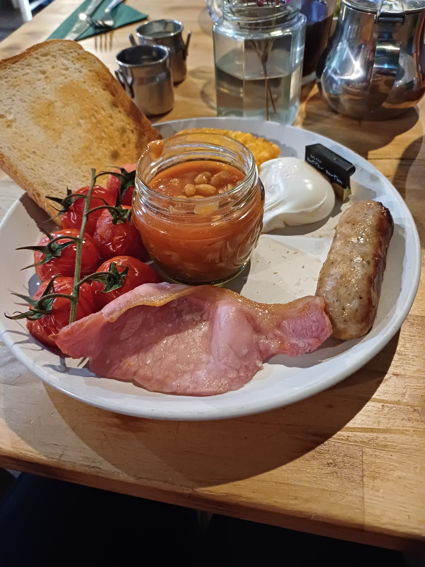 š³ Regular Breakfast - butchersā pork sausage, thick cut unsmoked bacon, flat mushroom, vine-on cherry tomatoes, hash brown, egg your way, a pot of Heinz beans & a slab of toast with Welsh butter. A proper hearty plate ā the definition of comfort food.