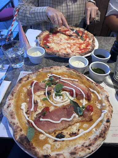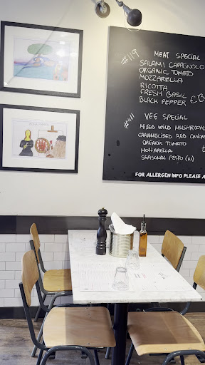 My husband and I eat here on a Thursday evening after work and really enjoyed the starters which were a Yorkshire lamb sausage, roasted potatoes cooked with onions. organic tomato and mozzarella for him and Mozzarella and Bresaola for me. Both were just what you want from a starter - flavoursome, but not so large as to spoil the main event, which is the sourdough pizza.