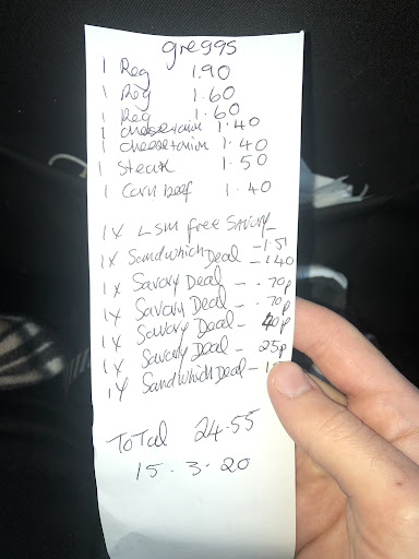 Read moreThe cashier was rather rude, refused us deals being advertised because she claims “its already gone through the till”. After she told us she has done it again and added the deals on, we paid and asked for a receipt, she pulled of 4 receipts that she said wasn’t ours then said the machine is broken. We asked for her to write it out so we could split the bill as it was a large order. The written receipt doesn’t make sense to our order. Overall the service was poor our food was cold will not be returning to this greggs...