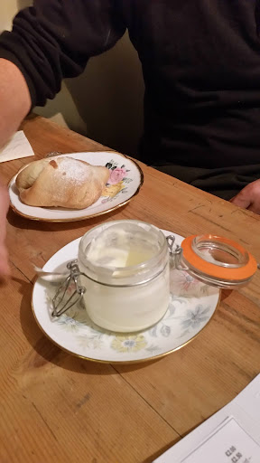 Read moreLovely and quaint. Its in a building with a gifts and souvenir shop that has some nice higher end content and so its a generally old fashioned atmosphere with a delightful eating area thats away from the street and very relaxing. Cream tea was knockout. Really nice and very affordable. They serve you quickly too. Pleasant and charming staff. We will go back. If you enter via the gift shop as it is annexed to the cafe you might find a very sweet natured Dacshund sat in a basket on the counter. Sadly not for sale but adds to the draw from...