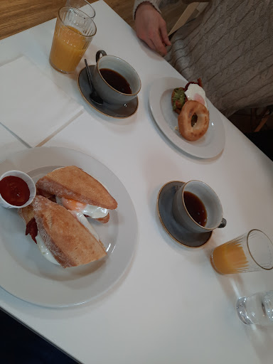 The cafe is tucked away from the high street, located at the further back of a new-ish business/shopping centre/courtyard. It's not easy to spot but you get the pleasure to sit in peace and enjoyed a lovely view (on a sunny day). The seating indoor looks great too. Nice, clean toilet with baby changing station. We had a really lovely time....