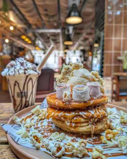 Read moreWe visited the amazing Haystacks in Merthyr Tydfil this week, and have to report what a wonderful experience it was. We brought our baby in pram and our dog, and we're looked after so well. The staff helped us choose our table, with plenty of room to accommodate the pram and dog, and we're so attentive throughout our visit. They really are dog friendly, as they made sure our lab was well looked after with lots of fuss and even gave her a sausage as a treat. The food was exceptional - I can't quite figure out how they were done but the eggs on the farmer's s breakfast are some of the best I've ever tasted. Me and my other half shared a breakfast between us, as we also wanted to sample the pancakes (both breakfast and pancake portions were more than enough to share). We had the Kinderella pancake stack and it was every bit as tasty and decadent as we hoped for. We can't wait to come back and try more of the dishes, especially as it is also great value IMHO. Decor is brilliant too, and the atmosphere even on a moderately quiet week day...