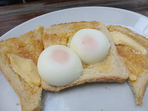 As I gazed down onto the plate before me. The eggs looked like... um... how to put this... a pair of flopily dopilies on a piece of toast... a pair of jaundiced eyeballs... I have no idea. Just look at the photo, you'll see what I mean...