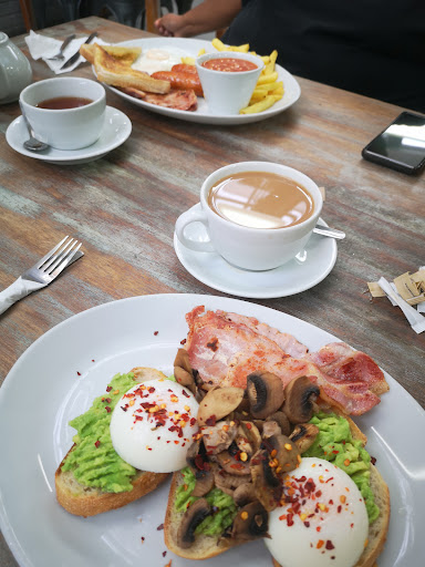 I ordered my meal. Poached egg on toast. The hide out brunch (or something vaguely along those lines) a black coffee and for dessert a Welsh Cake and Lemon Drizzle cake. My food arrived in good time and the waitress was very friendly. However the food wasn't up to much in all honesty.