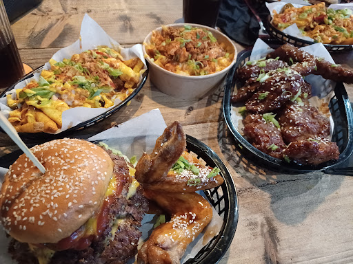 I ordered a bbq pulled pork chicken burger and it was so conflicting. The chicken itself was quite nice, but the entire burger was falling apart. The bap was slightly soggy and slightly burnt with the tiniest amount of pulled pork Iāve ever seen hiding underneath a single strip of bacon. I upgraded to loaded fries which were honestly quite bland and nothing special, the beef on my fries was dry and overcooked, and for Ā£4 extra I really regretted upgrading them.