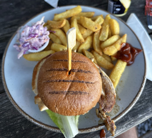 Food arrived, toddler wouldnât entertain his meal (doesnât mean it was inedible!) my burger was dry and came in 6 broken bits, and my chips were under cooked. Also ordered some cheesy garlic bread which was tasteless and not eatenâŚ