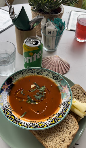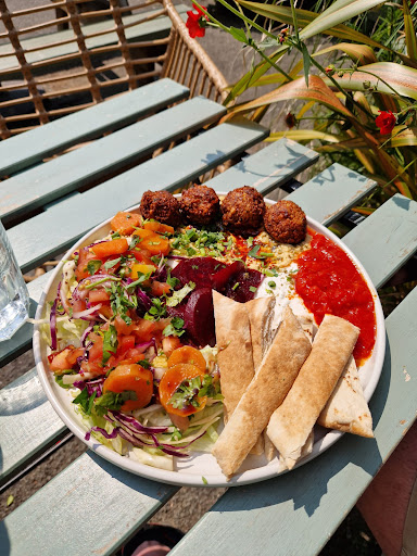 Lovely, friendly staff. Unfortunately we missed the cut off time for food 4pm (to my dismay after I dragged my 78yr old father up the hill!) We sat outside in the beautiful garden area and enjoyed a vegan flapjack, carrot cake, americano, raspberry lemonade and a tea. I will revisit to sample their vegan middle eastern menu (it looked amazing). I was visiting my father for the day whilst he was holidaying in Pwlleheli and he drove us to Abersoch (my 1st visit) Wow, beautiful seaside village. Its sometimes hard to find decent homemade vegan/plantbased dishes when we are travelling, this placed popped up on google...