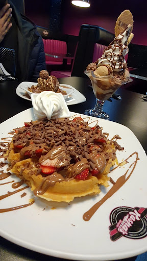 Read moreOf all the hype I've heard over time that dessert only restaurants were the new craze, I was expecting alot coming here and was Dissappointed somewhat before we got to the door. It was not well lit in comparison to the surrounding independent vendors. We were not greeted upon entry and were only asked if we were eating in when we were wandering back and forth to see if there were free tables in the rear. Once seated we were told to pick from the menu and order at the desk. The interior was as dim as the exterior and the seating seemed untreated and worn. The embroidered signage on the seats were filthy. The toilets were closed with the exception of the disabled which was in disrepair, the door was hard to secure shut and lock, the toilet roll holder was empty and a large toilet roll was placed on the wall rail. The hand basin only supplied cold water and the dryer was hanging out of the wall. The waffles, ice cream and coffee that we had were absolutely amazing but everything else seemed to let it down. Even the staff did not seem keen or happy. It's a...