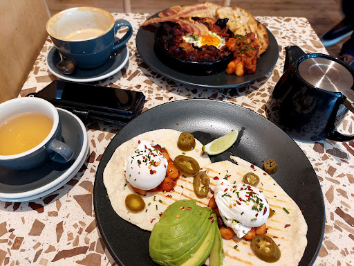 Read moreDefinitely worth a visit for breakfast / brunch if nearby. You can only access and order from the menu via scanning a qr code which is at the door and also near to most tables in the restaurant. This looks to be a good way of ensuring people sign in for track and trace. We were quickly collected from the entrance and received good service to our table which we picked from those available, that were all spaced out reasonably. The drinks arrived promptly and I'd estimate we waited around 10 minutes for our food. There are quite a lot of things to order - at the time of writing there are 16 different breakfast / brunch options. Our hot chocolates had a variety of options for what milk was used and for toppings and syrups. The Chorizo Hash that I had tasted nice if not a bit light on the chorizo, and my partner enjoyed her Breakfast Brioche. We didn't wait long at all for our used plates and cutlery to be taken away. The music was perhaps a little louder than I'm used to but not so loud as to make it difficult to hear one...