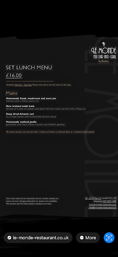 I’ve been a regular customer of Le Monde and have taken many people here for lunch over the years I’ve never experienced such awful customer service. There are so many restaurants to choose from in Cardiff I would have thought they’d bend over backwards to keep customers - not go out of their way to lose customers.