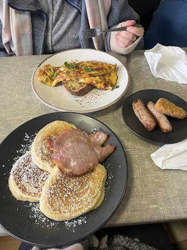 The decoration looks very tired and could really do with some warm attention. Friendly staff however it did feel somewhat chaotic and slightly disorganised- with 1hr parking, it took 50mins for a hard boil egg, two pieces of toast and a bacon sausage sandwich to arrive. Whilst the staff did apologise for the delay, the order wasn’t complicated for a table of two. - disappointing experience and unsure If I would return - other than a coffee with time 😳😳