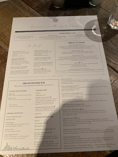 Well I'm sat in the restaurant now bored to death waiting again so I decided to write a fair review! Arrived and asked for a table for 4-5 to be fair we were told the may be a 45 min wait. We were seated and told to order at the bar when we were ready, well that was not exactly what we were looking for but there we go. We decided what we wanted and did our very best to remember the order for the whole table while we waited at the bar, once we started giving the order were were told sorry no sea bass, so that was changed, next person's order sorry no garlic mushrooms so that got changed too. So then I have to carry all the drinks right across the pub to the table myself, 2 trips later I get to sit down. The the food starts to arrive which is when I really started to get irritated!! 1 Starter arrives, 20 mins later another starter arrives with the remaining 4 mains, so we watched 1 person eat a starter while we were starving then I get my starter and main at the same time. Quality of the food was rubbish but given the fact that K had to pay for this upfront there was not much choice but to eat it, trust me if ai hadn't paid we would have walked out and gone elsewhere long ago!! Various people dropped off and collected plates not one asked how everything was, if there had I would have told them, I have written this whole review still sat here table not cleared still not asked how it was. No service whatsoever, if you were expecting a restaurant service don't bother coming here, we won't be back!! Kids didn't finish their brownies either so they must have been bad!
