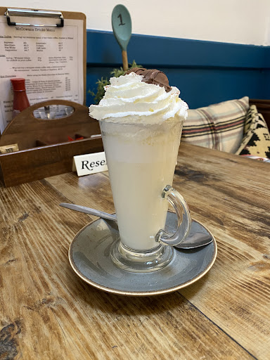 We drove through Aberaeron the other day and decided to stop here as it’s a genuinely pretty little town (visit and see). After wandering around we decided to stop for a drink. We were also tempted with cake. The staff here were really friendly and welcoming. When my son was choosing what he wanted, a hot chocolate, the lady serving jumped in and told him about all the different choices he could have. Ignored me and spoke directly with him. I like this. He was advised to have a bueno hot chocolate (pictured) and he loved it. My mocha was ace and the wife’s cappuccino was good too. Cake was good, as it should be! The venue is really nice too. Seating upstate and we were allowed to bring the dog in too. Lots of nostalgic local pictures. But as mentioned earlier, the staff were really friendly, chatting with the customers and making everyone welcome. Great...