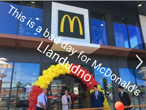 Read moreLlandudno McDonalds is the worst I have ever experienced. At about 6pm on Tuesday 16th July took my mum to get takeaway following a funeral before we headed back to Manchester. Staff were stood round at the back just chatting for ages, no-one on front desk despite big queue so there was an assumption everyone could use self-service machines. No paper to print receipts with order number. Waited a long time, def not fast food. Ordered Happy Meal and chose toy not book but got book, when took it back to change staff member was very dismissive. Unfortunately we drove and ate food at West Shore or would have taken the food back. Got cheeseburger happy meal and meat, if you can call it that, was cold, dry and cheese not melted, bun overcooked and dry. Only plus point was chips were hot and freshly cooked. Mum had chicken sandwich which she said was like rubber, bun was overcooked and looked like it had been dried out in microwave. We were starving so still ate it but won’t be going back. Staff training needed and management oversight, more training on customer service and food preparation to improve quality. I accept the food never looks like the pics but this was beyond acceptable even for McDonalds standards, so won’t be returning. Only ate due to extreme circumstances and time constraints. The 2 stars are for the...
