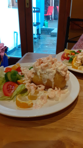 Lovely little courtyard cafe accessed through an alleyway on the seafront.