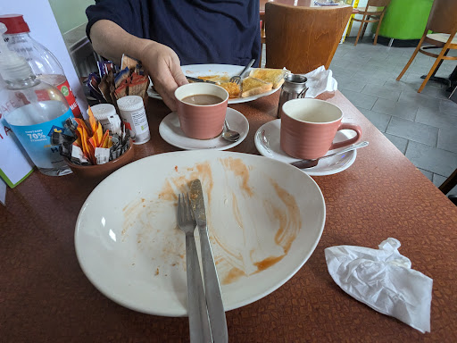 The lady who served me was pleasant and accomodating but the tea in the teapot was very poor quality, Lacking any flavour and very thin despite several efforts. the china pots however don't hold any heat,. Leaving the tea warm, and the lady did say we could have more hot water. Unfortunatelyi found i had to drink the tea quickly...the scrambled egg on 2 toast.was hard and over cooked ( microwaved) and it was clear to see the hard dark part of the yolk had not been mixed before cooking, which i found inedible to eat ..despite already eating the rest..and found it a little over...