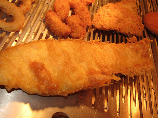 Orange Fish - what they Advertise; Finger fish in chips - what we got.