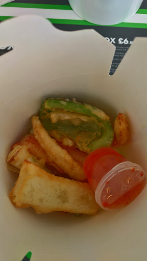 Lets start with the side. I'm fairly sure these are priced at about £4 each . I ordered a box of battered prawns, and received a grand total of 2 prawns with something like 4 pieces of battered vegetables (carrot sticks and such). Don't get me wrong, they were nice but I would have expected more than 2 prawns for the price.