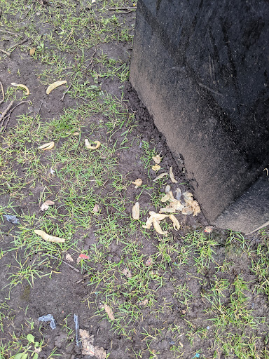This isn't someone who bought something from the cafe, but actually the staff themselves. I've seen them and so have quite a few others. It's about time they stopped and disposed of food waste properly. See photos. It's around the bin opening and down the sides to the floor as they tried pouring the contents from the tray into the bin. If a dog even eats a bit of that, it will require an emergency vets...