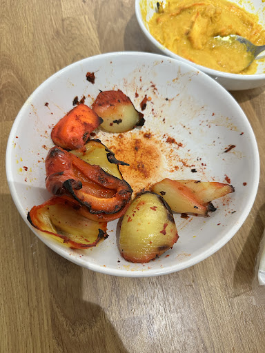 Food I had ordered a biryani with plain naan,and a jalfrezi dish, alongside 2 bottles of water. Waitress took the order down IN WRITING, but when food finally came, there was no naan!.🤦🏾♀️🤐 We were served water in a jug also. By this time I was too hungry to bother to draw their attention. The rice was well cooked and meat was tender. I only wished the spice level was as advertised as we were looking forward to the hotness of the jalfrezi 🙁