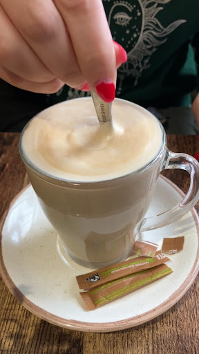 Quite small and cramped, no real tables for 3 and not allowed to use 2 tables (ie a table of 4). Coffee was ok, hot and tasty but no sugar free syrups (also charging 55p for oat/soya milk I don't think is fair). Kids cheese on toast (glad I didn't go with the smaller of the 2 kids options)- it wasn't even one slice of bread, it was 3/4 of a slice, tasted ok but still really poor considering the price. No squash for kids, charging £2.50 for a small carton of juice!! Overall, I definitely wouldn't return given I paid nearly £18 for hardly anything I know I can get my moneys worth in several better coffee shops...