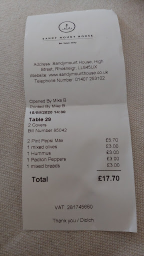 Read moreOh Sandy Mount...how I really loved you when you first opened. Great service, fantastic surroundings, exceptional food. But, what has happened? I know we're in the throes of a Pandemic and I tried to forgive the shortcomings, but honestly, I don't think the problems could be excused. Service - your staff are friendly and polite, but I think they forget that they have a job to do. Shown to seats for drinks on 2 occasions, no one bothered to come back and take our order until, eventually, we called them over. It then took an age for the drinks to appear. On our third visit, this time for food, we were told that my son couldn't have Pepsi due to a problem with the postmix, which is fine, but this was left on our bill despite being told it would be taken off. After waiting for about 40 minutes for our food we asked the waiter if it would be much longer, he said he'd go and check. Never came back to us. So we asked another waiter. Exactly same reaction and outcome. My husband then left his seat to ask a woman who seemed to have some authority she came back to us to advise it was being plated up. Just an hour to wait for food then. Was it worth the wait? Absolutely not. We both had fish finger sandwich. Much more tartare than fish. Such a disappointment. The chips were soggy and soapy tasting - a sure sign that they were cooked ages ago. When you first opened, I had perhaps the best sandwich I'd ever eaten, and oh my goodness, the chips were exceptional...crispy outside, light and fluffy inside. But everything seems to have slipped and deteriorated, which is a massive shame. I perhaps wouldn't have minded so much if it was mad busy. Of course it wasn't, due to Covid I assume. I also assume that you'll tell me staff numbers are reduced, but there was no reason whatsoever for them not to ask what we'd like to drink, or to come back to us when we'd asked if our food would be long. The bar across the road seems to have a better set up, and in future I think that will be our first port...