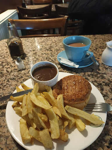 Lovely food, best chips we have had for a good while, really enjoyed, pie was a bit bland but the lovely gravy and chips definitely compensated. Staff are lovely and friendly, but two things let this place down in my opinion, it may or may not be yours, but, there is a single toilet that the whole cafe shares, which could do with a little lift, and the whole of the cafe is still painted on the bottom half of the walls in a depressing dark brown, it makes the whole cafe look dark, jazz it up by painting this a pastel green for instance and it would give the whole place a lift, as I...