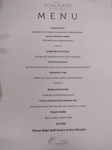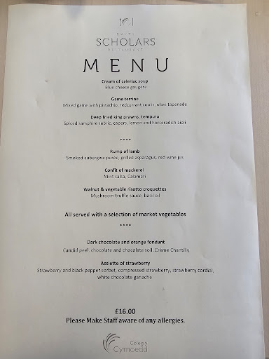 Read moreWe attended Scholars Restaurant this week for the 3 course Christmas menu. We were impressed with the food which was prepared to the highest standard making it absolutely delicious. The table was laid out beautifully and It was easy to forget that we were on college grounds because the students were polite and professional at all times. Definitely...
