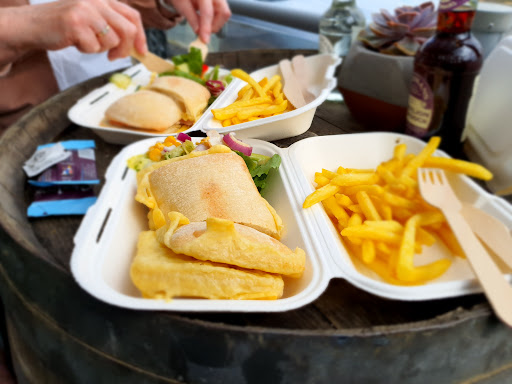 May Bank Holiday weekend and the place was extremely busy so have taken this into a account in my rating. Sat outside under the cover you have a fabulous view of Borth y Gest beach and beyond - unless a van or large 4x4 parks on the roadside, and then you see nothing. Staff very pleasant but waited a good half hour or more before our order taken. Then it was a further long wait for our coffees, which were far from hot, lukewarm actually, when the arrived. Waited a further half hour for our paninis and we even asked if they had forgotten us. I have to say were delicious when they finally arrived but we had well and truly finished our coffees and didn't wish to order more given time it took for our first cup to arrive. My friend had finished and asked for the bill to be told to go to the counter. I stopped eating for a moment to speak to my dog and when I looked up the remnant of my panini and salad had been cleared away. My friend mentioned when paying about the delays and the fact the coffees were cold and was told she could have asked for hot water!! I won't say I won't eat there again but I will be very loathe to, and it definitely won't be during holiday season and...