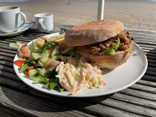 Read moreA genuinely splendid find. We passed this place yesterday so thought we would give it a try. Breakfast was our quest, and It was met with great aplomb. Very nicely decorated, and a rather splendid sea view. Now I did notice that alcohol is on sale here but hey.... We did breakfast so I can't really review that here... But just so u know... Its available. The place was fairly quiet but that's probably as its the off season, and also raining. The breakfast was superb, opted for the full monty of a bit of everything and it was very nice, fresh, hot, well presented and very very tasty. The staff were more than pleasant and the prices are very reasonable. There's also a nice outdoorsy bit which would be perfect for sitting overlooking the beach but as stated it was raining so none of that today thankyou. A great find and in the words of arnie....