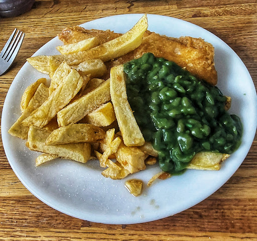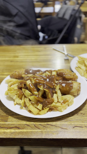 Typical high street fish & chip shop, staff very pleasant and polite. Normal menu items but expandia bit to include roast dinners, chicken curry, and ham and eggs, I don't know the quality of these dishes but the fish and chips we had were lovely. Plenty of seating available, and one unisex toilet which was clean and tidy. My only real negative was the coffee, it was, IMO, atrocious, basic Nescafé two spoons of coffee and a drop of milk, I had to ask for extra milk for the wife's mug. Super strong builders coffee it would appear, but it might be what the regulars want so who am I to complain as we were only passing through, but in the cutthroat market of daytime eating and offering, even if the one touch coffee machines that are seen in many outlets now might drag in more customers? 🤔 If you're after a tasty quick meal would recommend, especially as they do offer a kids and OAP...