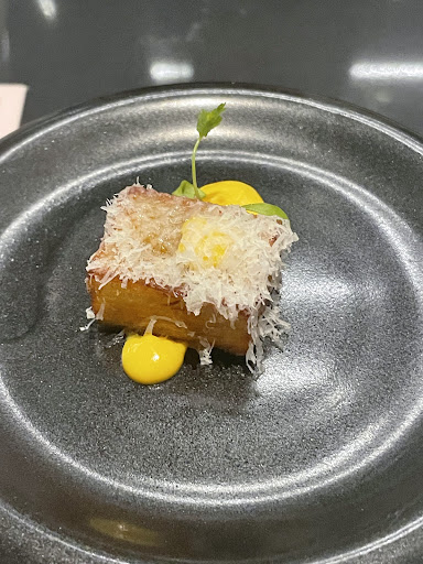 The first course, āchips and cheeseā was ok, the potato was very crisp and tasted good but the parm epsuma was not widely liked by our table. It was a slightly frothy textured parmesan soup and after one or two spoonfuls began to taste a bit sickly.