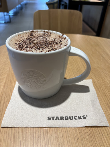 Hopeful to shelter from the weather whilst my car had an MOT but the doors were locked at 09:00 on a Tuesday - incorrect opening hours. Not a town centre cafe either, but off a roundabout of main roads, a services provider essentially. Once opened and let inside, the interior was freshly cleaned and staff were polite. Total to pay = £8.20 for a small hot chocolate (which was more water than anything else) and a sweet treat to take away. No option to stay in as no dogs allowed, of which I had two small ones. Seriously, Starbucks? If you're going to charge the earth for something worse than what I can make myself at home, then at least update your standards to allow all customers to sit in if they wish to!!! You've been established for over 50 years and claim to be one of the most premium coffee suppliers in existence. Poor quality and whilst I'm not usually one to leave a negative review, I felt this one was absolutely necessary as yet again I'm failing to believe in the Starbucks mission of 'inspiring and nurturing the human spirit', whilst I drink my watery hot chocolate inside...