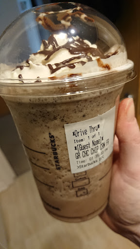Ordered a choco chip creme frapp which was yummy and noticed a chocolate cheesecake muffin on the menu so grappled one of those in impulse too. Also really good, moist sponge and plenty of cheesecake filling, topped with prep crumbs.