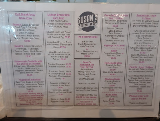 Read moreBeen to Susan’s on a number of occasions and in the past the food has been very good however on this occasion it was very poor. We had the full breakfast and eggs Benedict, both were luke warm/cold and parts of the breakfast were undercooked. We waited nearly an hour for the breakfasts to arrive and yes I realise it was Christmas Eve and it was busy but, keeping food warm/hot is not hard. I mentioned this to a staff member as we were leaving and she said if I’d mentioned it we could have had another breakfast (hot) however we did not want to wait another hour! I was not looking for a refund or discount on the bill, and we didn’t get one, so wasn’t disappointed by that! However we won’t be coming again which is a shame as it’s been a nice place in the past I’m not picking on this place in isolation as there are other establishments we don’t return to. Front Staff are pleasant and friendly and do a good job, let down by the...