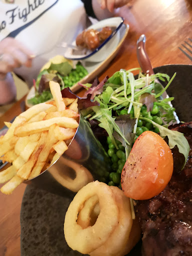 Huge piece of beer battered cod was delicious as were the home cut chips! Great atmosphere, friendly staff, proper locals pub but made to feel welcome, bit of banter as England has just lost to Scotland in the rugby... Chocolate brownie with salted caramel was amazing, the sticky toffee pudding was huge with lashings of butterscotch sauce, just gutted that this is not local to me...